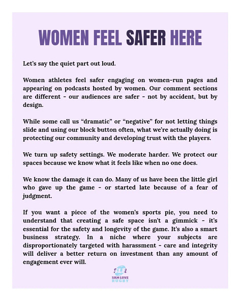 My friend Sam Lovett spoke about this issue in relation to women in sport a little while ago. Articulating some of the same themes underlying my discomfort of Pride rounds. If only sport would take this type of care for all the communities they claim to champion.